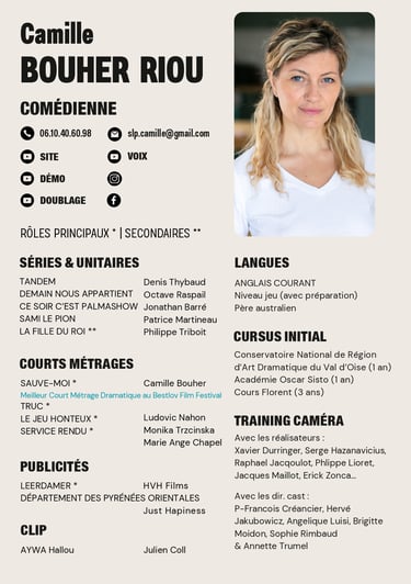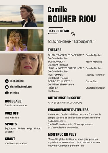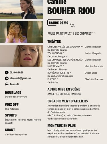 Depuis mon enfance, le monde du spectacle a toujours fait partie de ma vie. J'ai passé mon premier castings à l'âge de 8 ans, j'ai ensuite découvert ma passion pour le théâtre. À 11 ans, j'ai eu la chance d'obtenir mon premier rôle dans un téléfilm, une expérience qui a marqué le début de mon parcours artistique.